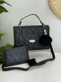 Conjunto bolsa preta com acabamento acolchoado em padrão diamonds e carteira correspondente. Design clássico e moderno, com alças de mão e transversal removíveis, detalhes em metal dourado e charm de pompom preto para um toque de personalidade. Espaço interno inteligente para celular, carteira e itens essenciais, mantendo tudo organizado. Ideal para trabalho, eventos ou passeio, combinando com qualquer look.