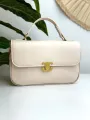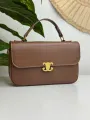 Bolsa pequena em couro sintético marrom com textura suave e alça superior para mão. Fecho em hardware dourado com logo, conferindo toque sofisticado. Compartimento interno compacto para levar celular, carteira e itens essenciais com fácil acesso. Versátil: ideal para daytime, ocasiões formais ou noturnas, combinando com jeans, vestido ou pretinho. Durável e prática para o dia a dia.
